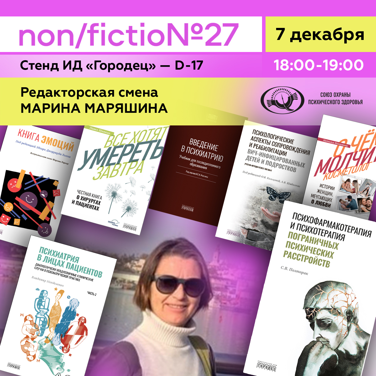 Куратор серии книг «Библиотека Союза охраны психического здоровья» в ИД «Городец» Марина Маряшина расскажет о новинках и знаковых изданиях.