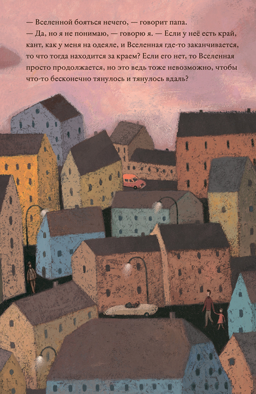Восьмилетний Кристоффер не может уснуть, он думает о Вселенной. Её необъятность пугает и порождает множество вопросов. Бесконечна ли Вселенная? А если конечна, то есть ли у неё край, кант, как у одеяла? И что там, за краем? Вдруг во Вселенной живёт огромная великанша, и мы ей снимся? Что будет с нами, если она проснётся? Придётся позвать папу, ведь он прочитал столько книг и наверняка поможет ответить на все эти вопросы.