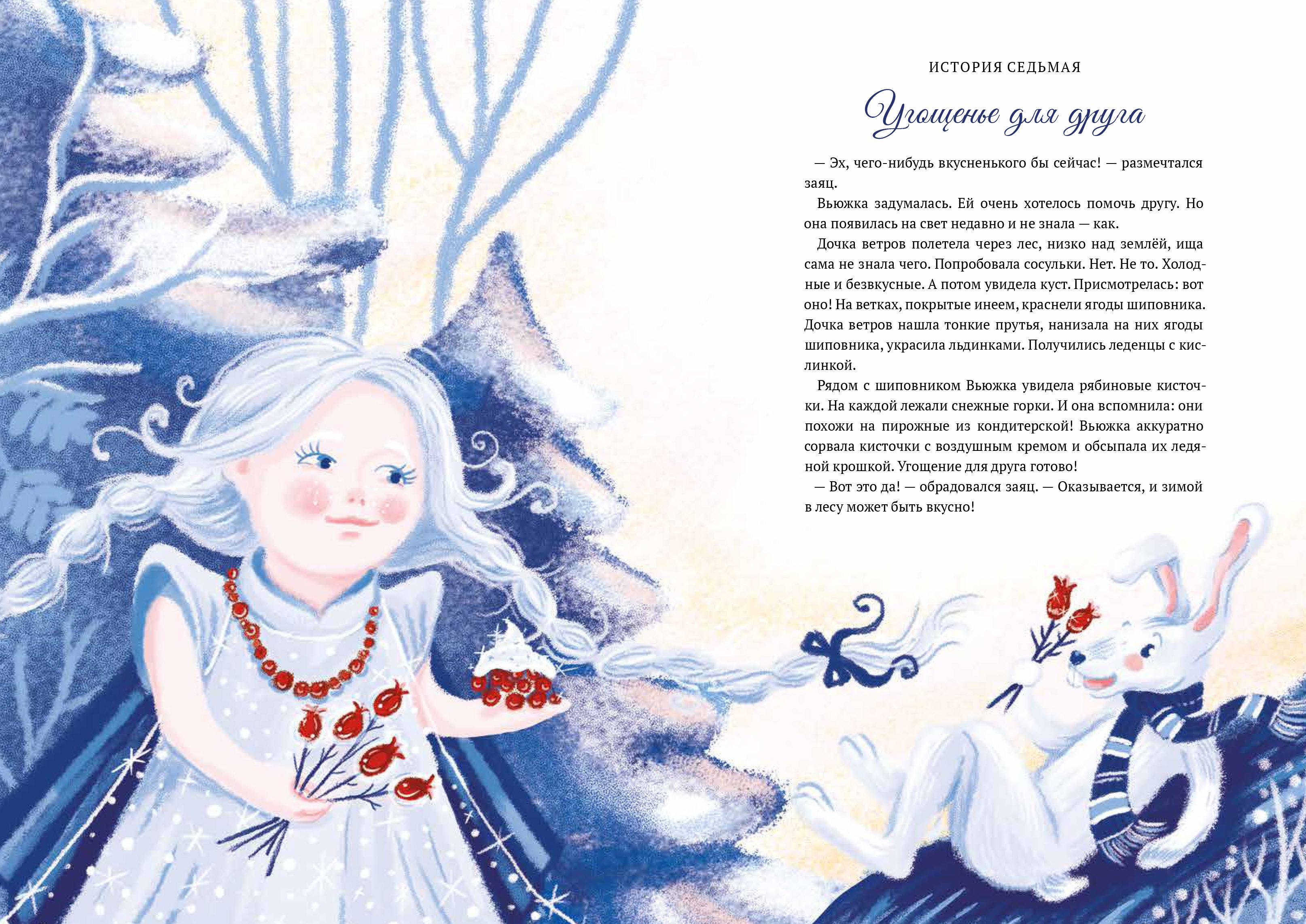В новой книге Юлии Малевановой мы знакомимся с целым семейством зимних ветров: папа Северный Ветер, мама Вьюга, дедушка Мороз, бабушка Метелица и, конечно же, их дочка-внучка — девочка Вьюжка. Они гуляют по сибирским лесам, посещают города, дружат с зайцами и соснами. А главное — никогда не теряют хорошего настроения.